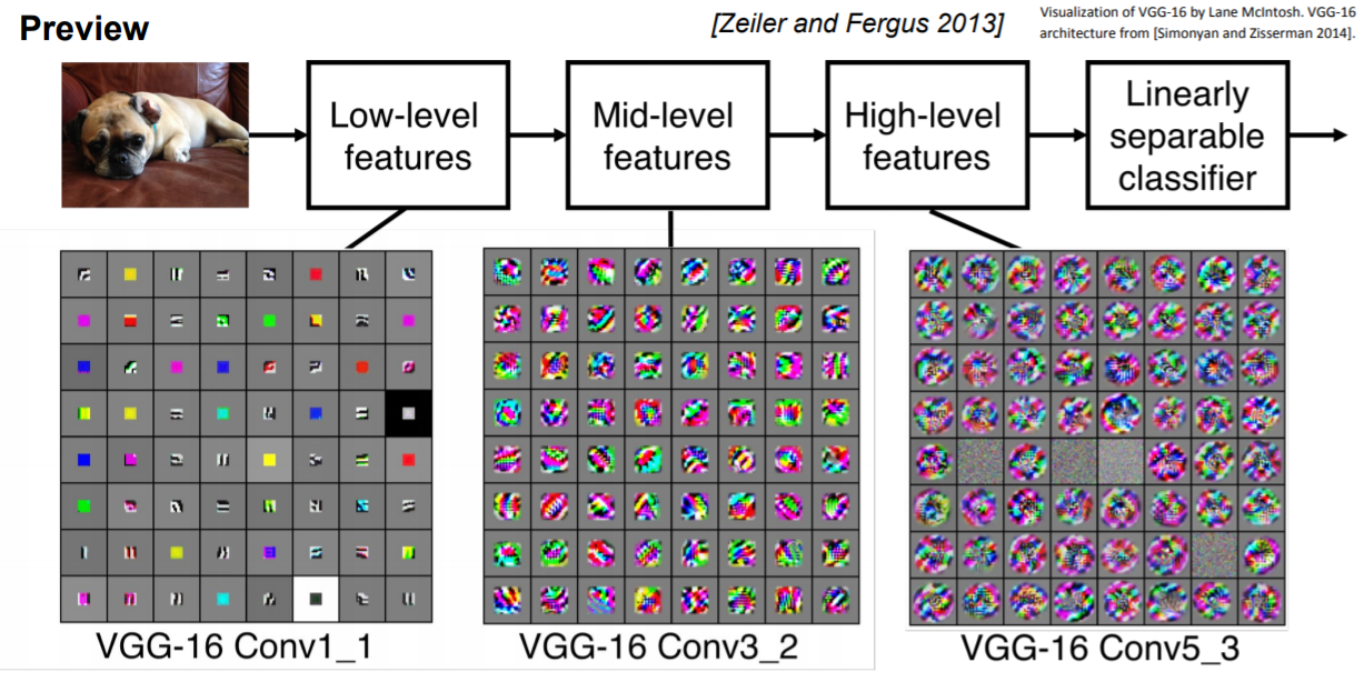 layer의 계층에 따라 단순 또는 복잡한 특징이 존재한다.