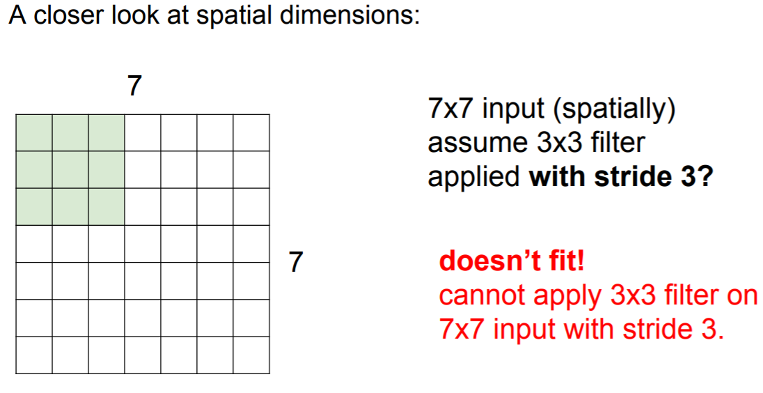 stride가 input 이미지에 맞지 않으면 불균형한 결과를 부를 수도 있다.