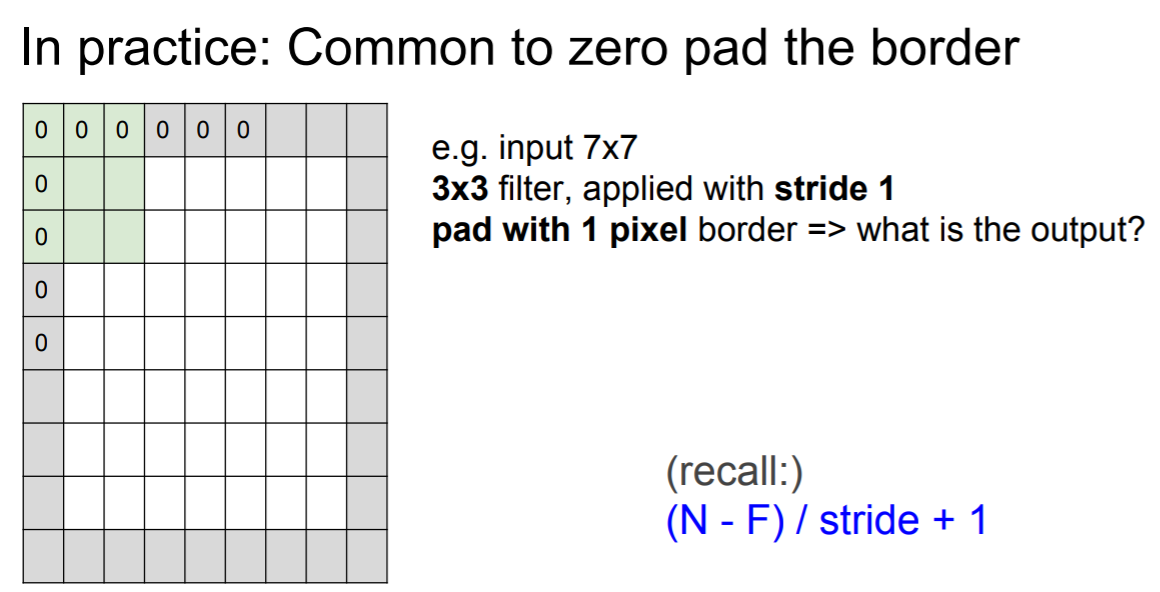 stride는 몇으로 할건지, zero-padding은 몇으로 할건지를 다 정해줘야한다.