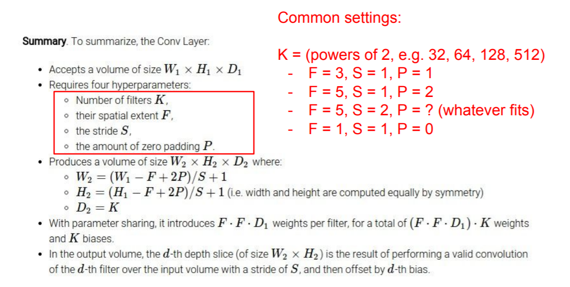 Conv layer를 요약정리한 것이다.