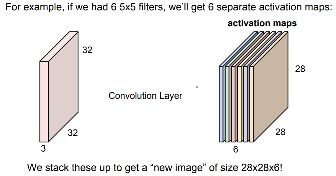 여러 개의 필터를 사용하면 여러가지의 activation map들을 얻을 수 있다.