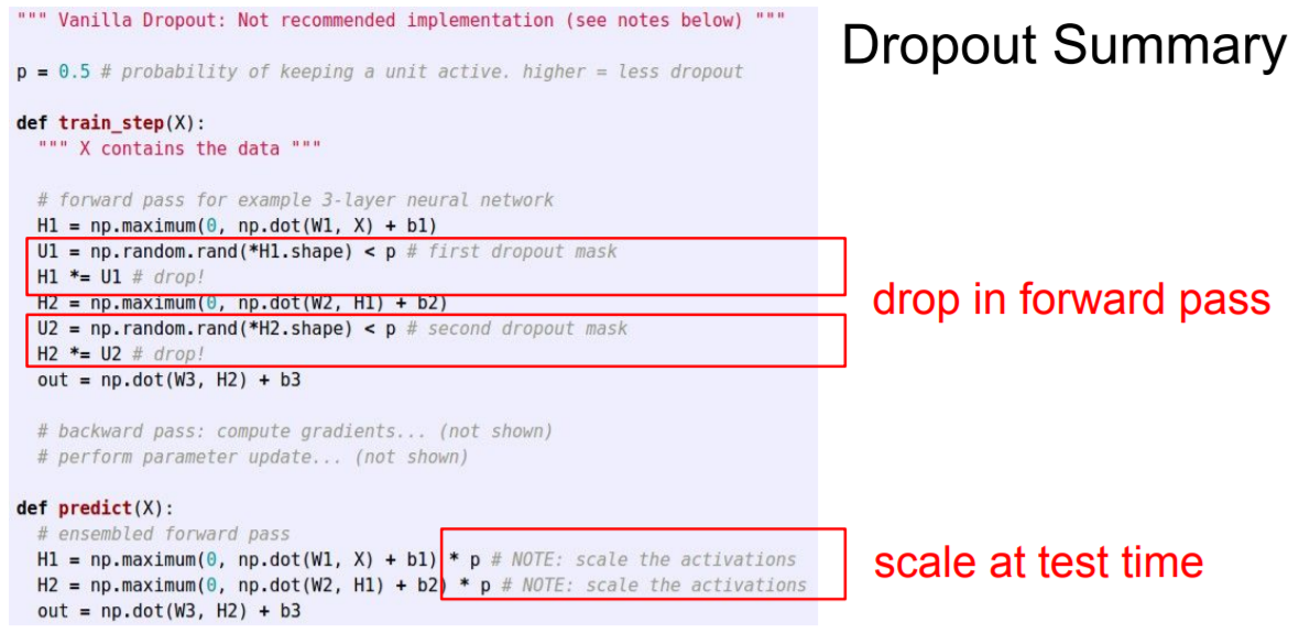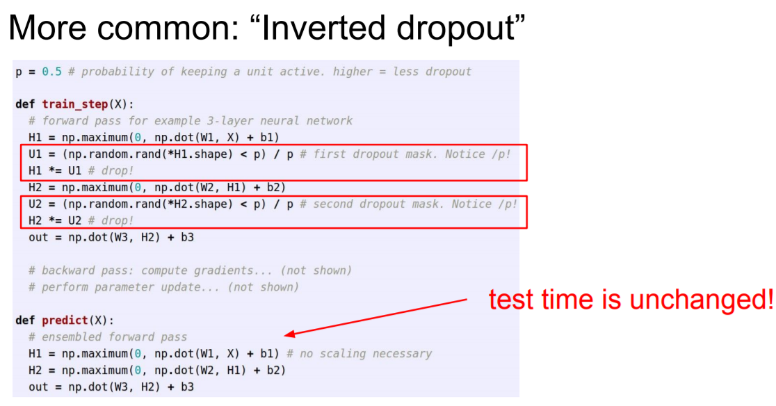 Test time에는 기존의 연산을 가져가고 train time에서 p를 나눠준다.