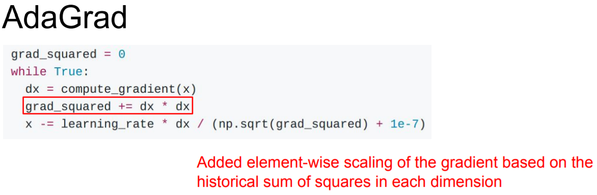 학습 도중에 계산되는 gradient에 제곱을 해서 계속 더해준다.