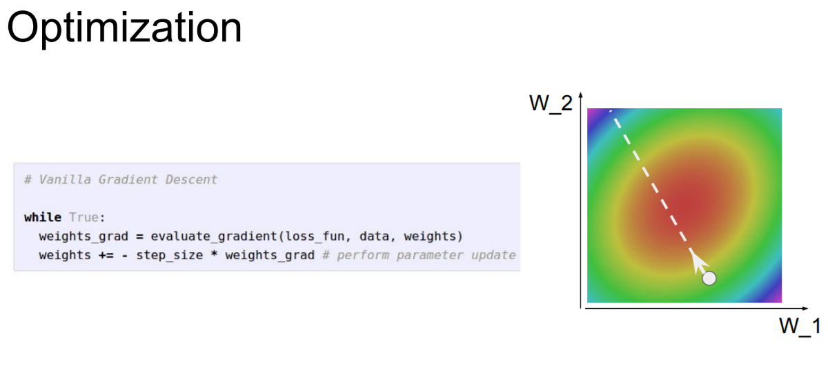 우리는 이처럼 loss를 줄여서 손실함수를 최소화 시키기 위해서 optimization 알고리즘을 사용해 과정을 거쳤다.