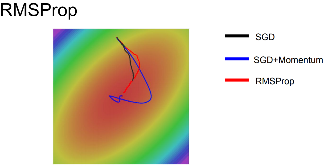 RMSProp이 우리가 원하는 이상적인 방향으로 가는 것을 확인할 수 있다.