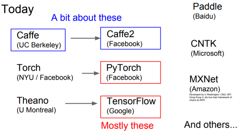 제품에 직접 적용을 해보려면 Tensorflow, Caffe2를 추천하였다.