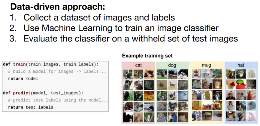 이미지를 구분할 때 직관적이고 명시적인 알고리즘(Hard Code)는 없다.