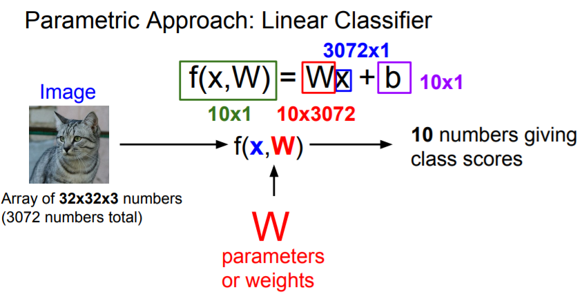 가장 쉬운 조합은 W와 x를 곱하는 것이고, 이러한 방법을 Linear Classification이라고 한다.