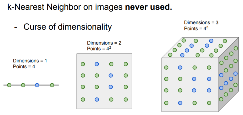KNN이 잘 동작하려면 전체공간을 조밀하게 채울 만큼의 충분한 train set이 필요하다.