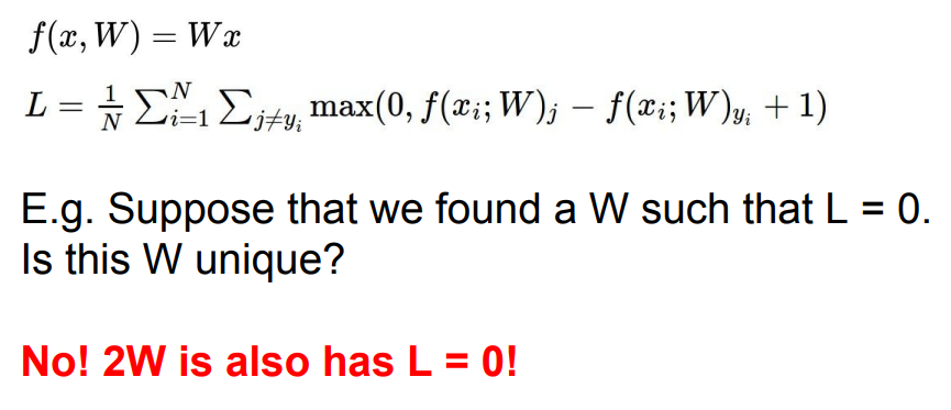 Q. Loss가 0이 되게 하는 W는 unique한 것인가?